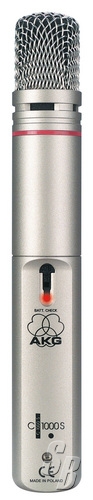 AKG MODEL C1000S SWITCHABLE-PATTERN CONDENSER MICROPHONE POWERABLE BY PHANTOM OR INTERNAL 9-VOLT BATTERY. COMES WITH PRESENCE BOOST ADAPTER, POLAR PATTERN CONVERTER, WINDSCREEN, SA 63 STAND CLAMP AND CASE