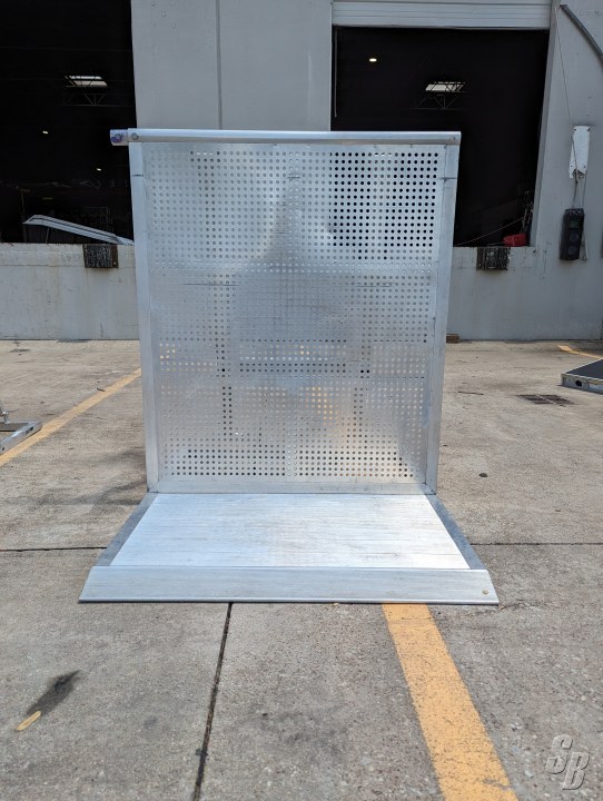 PERFORATED ALUMINUM BARRIER WITH SUPPORT BEAMS AND GROUND PLATE