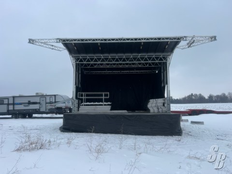 THIS STAGE IS LOADED WITH BANNER KIT, LED WALL, SUPPORTS, EXTRA PA ARMS AND A LOT OF ADDITIONAL FLYING HARDWARE