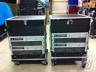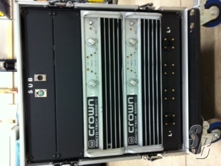 FEATURES: (TWO)CROWN 5000VZ AMPS PER RACK.EACH AMP IS WIRED BRIDGE MONO(4300 WATTS RMS @ 4 OHM).(39 HZ- 100 HZ).(USE CH. 1 FULLY CLOCKWISE, CH. 2 AT ZERO). THEESE AMPS WERE USED FOR SUB FREQUENCIES(INDOOR VENUES).