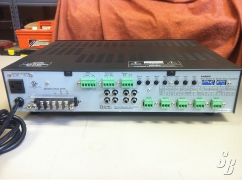 FEATURES: THE AA240 IS A 240 WATT SIX INPUT CHANNEL MIXER AMPLIFIER DESIGNED FOR DISTRIBUTED PAGING AND BACKGROUND MUSIC SYSTEMS. THE AA240 WILL ACCOMMODATE A VARIETY OF INPUT SOURCES INCLUDING PAGING MICROPHONES, CD PLAYERS, AND DIGITAL MUSIC RECEIVERS.