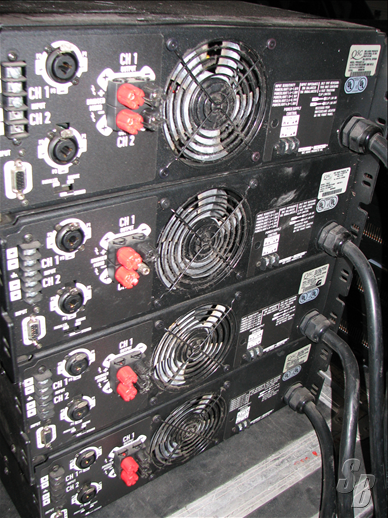 COMMENTS: ONE OF THE AMPS IS MISSING THE PLASTIC COVER FOR A BINDING POST. THE BINDING POST IS STILL 100% FUNCTIONALLY, BUT THE PLASTIC CAP IS GONE. THERE IS SOME COSMETIC BLEMISHES ASSOCIATED WITH BEING IN A RACK. NO DENTS OR BENT RACK HARDWARE THOUGH.