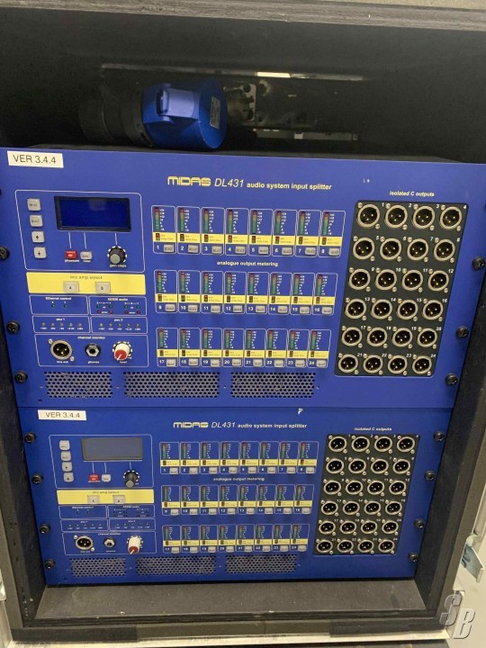 THE 2 DL 431'S ARE ACTIVE 3 WAY SPLITS. EACH HAS 24 INPUTS WITH 72 MIC PRES.