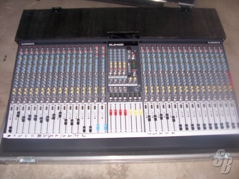 ALLEN & HEATH GL2400 32 CHANNEL MIXING BOARD WITH FLIGHT CASE W/DOGHOUSE...GOOD CONDITION, FOB WI