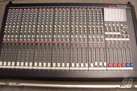 RAMSA SR4424 24 CHANNEL MIXING BOARD W/ GRAY SPECTRUM CASE A+ CONDITION, VERY CLEAN! 24X4X2, FOUR AUX, (3 PRE, 1 POST). INDIVIDUAL PHANTOM FOR EACH CHANNEL. A/B SWITCH FOR HIGH OR LOW Z INPUTS EACH CHANNEL. 12K HIGH, SWEEPABLE MID, 70HZ LOW CHANNEL EQ. FOB TN. USA