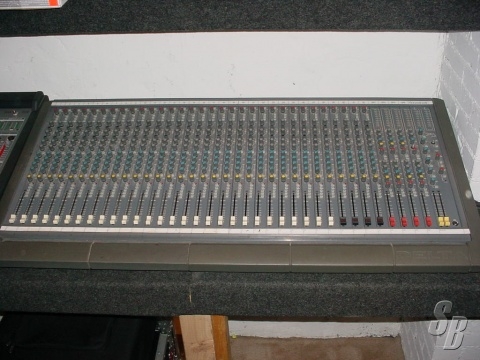FEATURES: 32 MIC CHANNELS, 4 GROUPS, 6 AUXES (POTS SWITCH BETWEEN AUXES 3&4 AND 5&6, 4 BAND EQ (HI-MID AND LO-MID ARE SWEEPABLE, EACH CHANNEL HAS MIC INPUT, LINE INPUT, SINGLE POINT INSERT, DIRECT OUTPUT