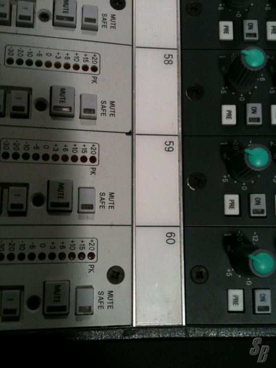 COMMENTS: 1 BROKEN POT ON CHANNEL 60, 2 MISSING FADER CAPS, CHANNELS 1-24 MISSING CHANNEL LABEL STRIP.