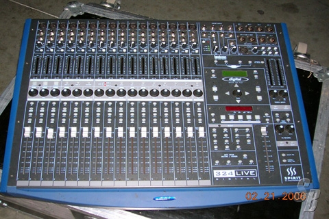 SPIRIT DIGITAL 324, 16 MIC/LINE INPUTS W/TRS INSERT POINT, 4 MATRIX OUTPUTS, ASSIGNABLE TALKBALK MIC INPUT, 16 DIGITAL TAPE RETURNS (T/DIF FORMAT) 4 AUX SENDS, 2 FLOATING OUTPUTS, 3-BAND PARAMETIRC BRITISH EQ ON ALL CHANNELS, 2 LEXICON EFFECTS PROCESSORS, 100MM MOTORIZED FADERS, 24-BIT SIGNAL PROCESSING THROUGHTOUT, BUILT-IN METER BRIDGE, INSTANT RECALL W/ ONE BUTTON PRESS