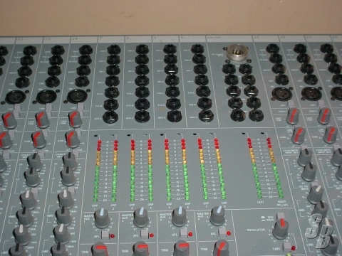 FEATURES: 32 INPUT MIC CHANNELS W/ LINE INPUT AND SINGLE POINT INSERT POINT, 8 GROUPS PLUS LEFT AND RIGHT, 4 AUX SENDS, 4 BAND EQ W/ SWEEPABLE HI-MID AND LO-MID,