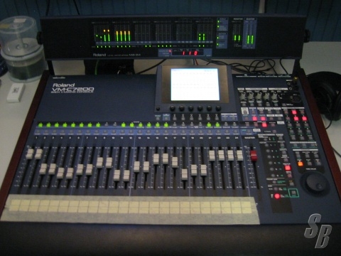 FEATURES: ROLAND VMC-7200 CONSOLE, VM-7200 CONSOLE PROCESSOR ( 24 ANALOG INPUT + 24 DIGITAL INPUTS ), METERBRIDGE, SIDEPANELS, R-BUS OPTION, EFFECT BOARD, 3X M-AUDIO R-BUS DELTA PCI HARDDISC RECORDING CARD