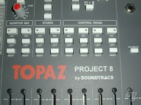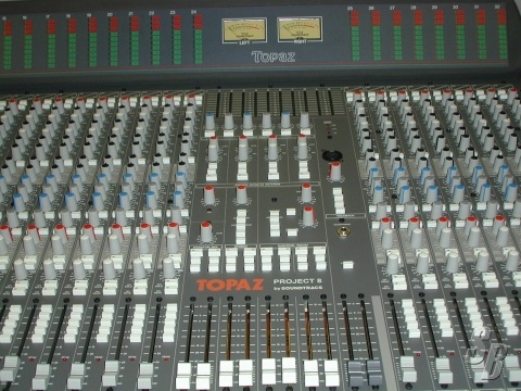 FEATURES: SOUNDTRACS TOPAZ PROJECT 8, 32 CHANNEL CONSOLE WITH METER BRIDGE. THIS CONSOLE PROVIDES AN AMAZING PACKAGE OF AUDIO PERFORMANCE AND FEATURES. YOU WON'T FIND A VINTAGE ANALOG CONSOLE OF THIS CALIBER IN THIS GREAT CONDITION ANYWHERE!
