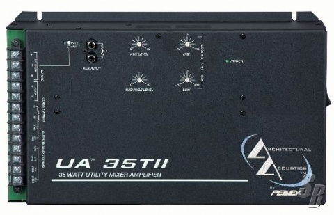 THE UA 35T II IS A 35 WATT, TWO-CHANNEL MIXER/AMPLIFIER WITH ISOLATED OUTPUT TRANSFORMER, AUX (MUSIC) INPUT, AND MIC/TELEPHONE PAGING INPUT. FEATURES AUTOMATIC, LEVEL-SENSING MUTING OF THE MIC/TELEPHONE INPUT OVER THE AUX INPUT. 25 AND 70 VOLT OUTPUT READY. PACKAGED IN A WALL-MOUNT CHASSIS NEW WITH FULL FACTORY WARRANTY, FOB, MS USA.