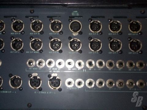 ON THE REAR PANEL YOU CAN ALSO SEE THE MAIN MIX OUTPUTS AND ALT PA OUTPUTS, AS WELL AS THE MIX INSERT POINTS. AT THE BOTTOM ARE THE 2-TRK INPUTS AND CONTROL ROOM OUTPUTS.