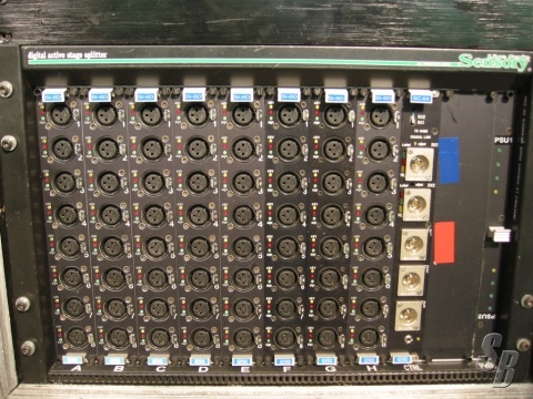THE KIT ALSO FEATURES A STAGE BOX MODIFIED TO 3 OUTPUTS INSTEAD OF 2 WITH EIGHT (8) SI8D2 ANALOG MIC / LINE INPUT CARDS (64 MIC PREAMPS) PLUS TWO (2) COMPLETE 500 FT. REELS PAIRS OF BNC CABLE.