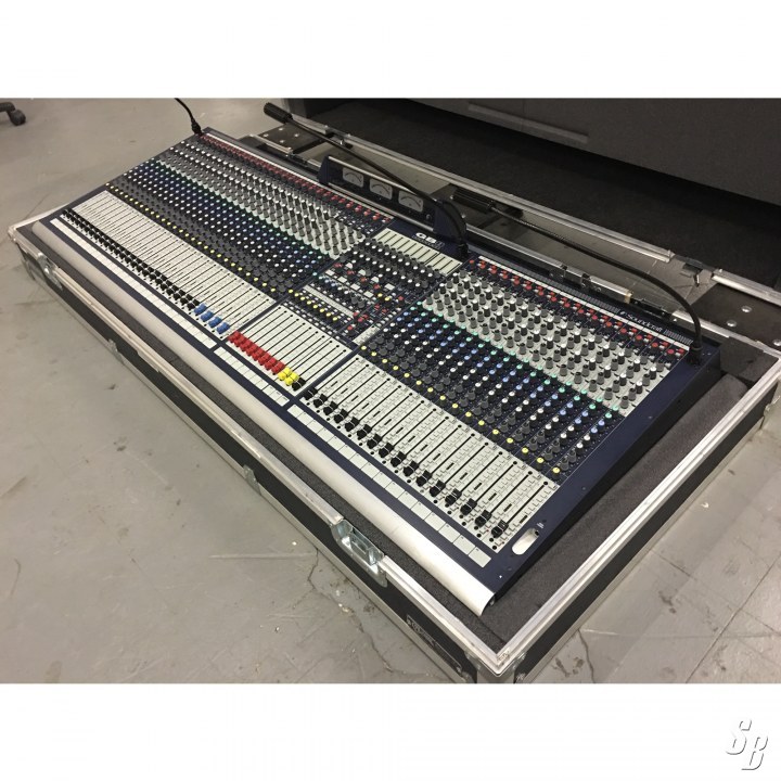SOUNDCRAFT GB8 40-CHANNEL ANALOG MIXER USED ONLY A FEW TIMES IN SCHOOL THEATRICAL SETTINGS. IT FEATURES 40 MONO CHANNELS, 4 STEREO CHANNELS, 4 STEREO RETURNS, 8 SUBGROUPS, 8 AUX OUTPUTS, AND AN 11X4 MATRIX.