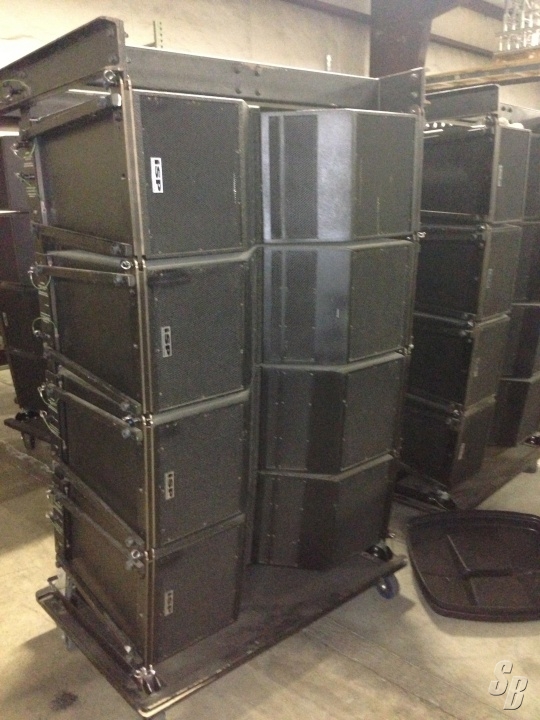 TWO 12 INCH WOOFERS, TWO 6.5 INCH HORN LOADED LOWER MF, TWO 3 INCH HORN LOADED HMF COMPRESSION DRIVERS, FOUR 1.75 INCH HORN LOADED HF COMPRESSION DRIVERS WITH MYLAR DIAPHRAGMS.