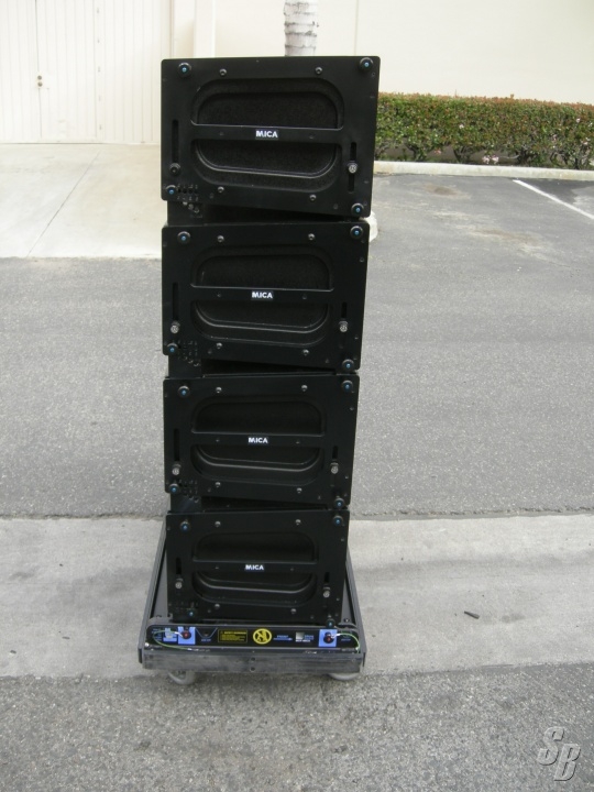 8 MEYER MICA LINE ARRAY SPEAKERS WITH 2 FLYBARS, 2 DOLLIES AND 2 COVERS IN SUPERB CONDITION: (SN:TBD)