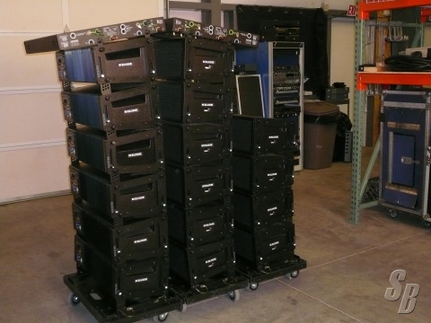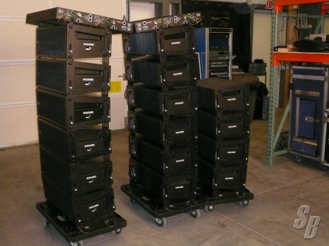 FEATURES: EACH CABINET HAS THREE 500 WATT AMPLIFIERS AND ONE 275 WATT AMPLIFIER. ONE AMP CHANNEL FOR EACH DRIVER. EACH CABINET CONTAINS TWO 8" LOW FREQUENCY DRIVERS AND ONE 3" HF COMPRESSION DRIVER.