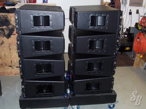 YES, THIS SYSTEM IS AVAILABLE. THESE ARE THE 13PLY WOOD VERSION. 5 BOXES ARE BRAND NEW USED ON 1 CORPORATE SHOW. 3 BOXES ARE 2 YEARS OLD, BUT LOOK GREAT. ALL ARE UNDER WARRANTY. FLYBARS AND CASES INCLUDED @ ASKING PRICE.