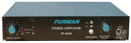 FURMAN SP-20AB - HALF RACK POWER AMPLIFIER HEADPHONE MONITORING SYSTEM -THE SP-20AB STEREO POWER AMPLIFIER IS A UNIQUE AND ECONOMICAL 20 WATT PER CHANNEL STEREO AMPLIFIER PROVIDED THE LOAD IS 8 OHMS (NOT RECOMMENDED TO USE LESS THAN 8 OHMS IN STEREO MODE).