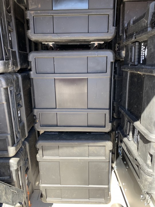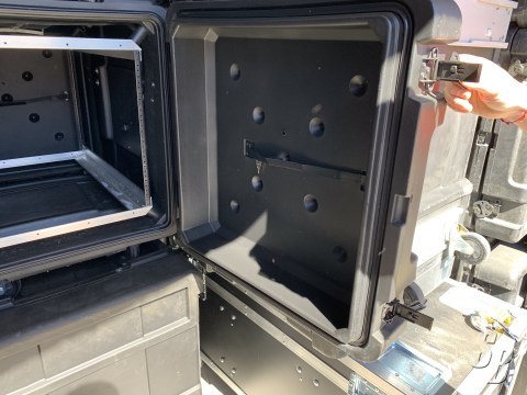 THE FRONT AND REAR LIDS ARE DESIGNED TO PROTRUDE INTO THE BASE OF THE CASE APPROXIMATELY 1" AND THEIR UNIQUE DOUBLE WALL STRUCTURE MAKES THEM INCREDIBLY STIFF WHERE THIS INTERSECTION OCCURS. MAKING THIS NEW GENERATION OF SHOCK RACKS MIL-SPEC SEALING CHARACTERISTICS WITH SIGNIFICANTLY FEWER LATCHES THAN MOST COMPETITION. THIS ALLOWS FOR RAPID DEPLOYMENT IN AN UP-RIGHT CONFIGURATION -- EVEN WHEN STACKED.