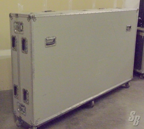 ROAD CASE IS IN EXCELLENT CONDITION. NO CRACKS OR DAMAGE TO LAMINATE. LATCHES AND CASTERS WORK LIKE NEW. NO DETERIORATION OF INNER FOAM. DOGHOUSE W/2 HINGED LIDS.