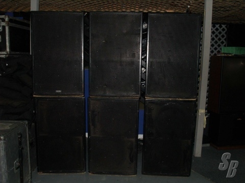 THREE OF THE KF 850'S ARE FULLY FUNCTIONAL AND IN GOOD CABINETS AND ONE OF THE KF'S HAS DAMAGE TO THE CABINET (AS YOU CAN SEE IN THE PHOTO). ALL THE COMPONENTS ON THE SPEAKER SEEM TO BE IN GOOD SHAPE, SO THE DAMAGE ONLY APPEARS TO BE TO THE CABINET ITSELF. ASIDE FROM THE KF'S, I ALSO HAVE THREE FULLY FUNCTIONAL SB 850'S THAT ARE IN GOOD CABINETS AND ONE SB 850 CABINET THAT COMES WITH ALL THE ELECTIONAL AND WIRING COMPONENTS, BUT IS MISSING THE ACTUAL SPEAKERS (CROSS-OVER AND WIRING APPEAR TO ALL BE INTACT).