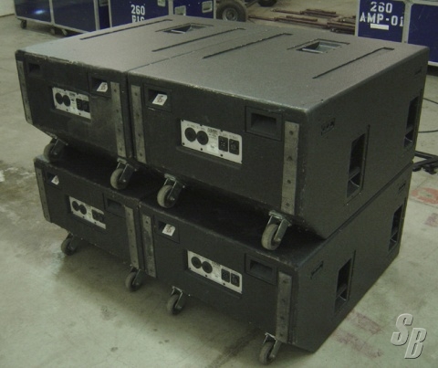 A PORTABLE SUBWOOFER SYSTEM WITH 2X 18-IN TRANSDUCERS IN A