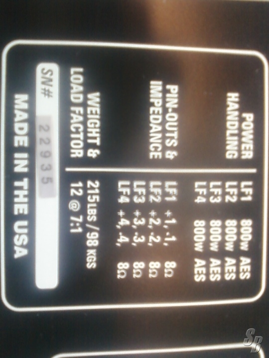 COMMENTS: THEY WERE INSTALLED IN A 900 SEAT BALLROOM FOR 4 YEARS, DOING ABOUT 4-10 SHOWS A MONTH. THEY WERE WORKING WHEN THEY WERE REMOVED, AND I THINK I HAVE AN EXTRA FIELD SERVICEABLE CONE KIT I'D THROW IN. PRICE IS EXTREMELY REASONABLE.