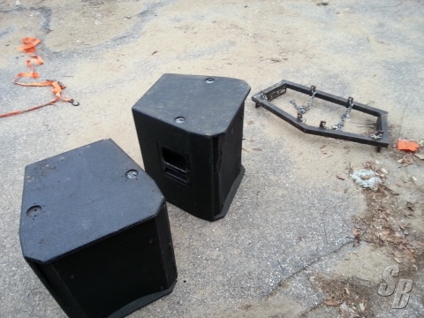 I ALSO HAVE 4 EA. CUSTOM RIGGING BRACKET WITH THE PAS RIGGING HARDWARE THAT IS CAPABLE FLYING EITHER 2 OR 4 ENCLOSURES PER BRACKET, ADJUSTABLE .