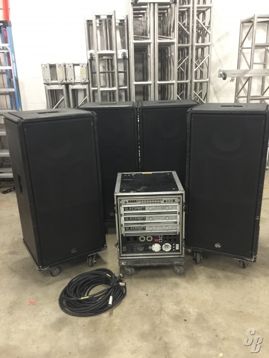 EXTRAS: THE AMP RACK PICTURED DOES IS NOT INCLUDED, BUT ARRANGEMENTS CAN BE MADE IF A TURN KEY SYSTEM IS NEEDED. TYPICALLY POWERED WITH 3X MA3600 AND 1X CLAIR LAKE IO