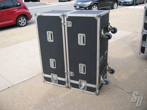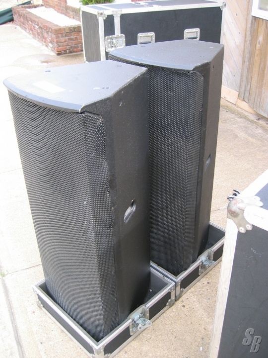 JBL SP226, GOOD CONDITION. ALL THE SPEAKERS TESTED WELL. EVERYTHING IS WORKING PROPERLY THE CABINET DOES HAVE BLEMISHES TO PAINT N GRILLS. THE CASES ARE SUPERB. ONE CASE CONNECTOR IS BROKEN BUT THE OTHER THREE HOLD WELL. ALL THE CASTERS N HANDLES WORK WELL. THERE IS ï½½ INCH OF FOAM AROUND THE SPEAKER BUT THE TOP N BOTTOM OF THE SPEAKER ARE JUST CARPETED IN THE CASE.