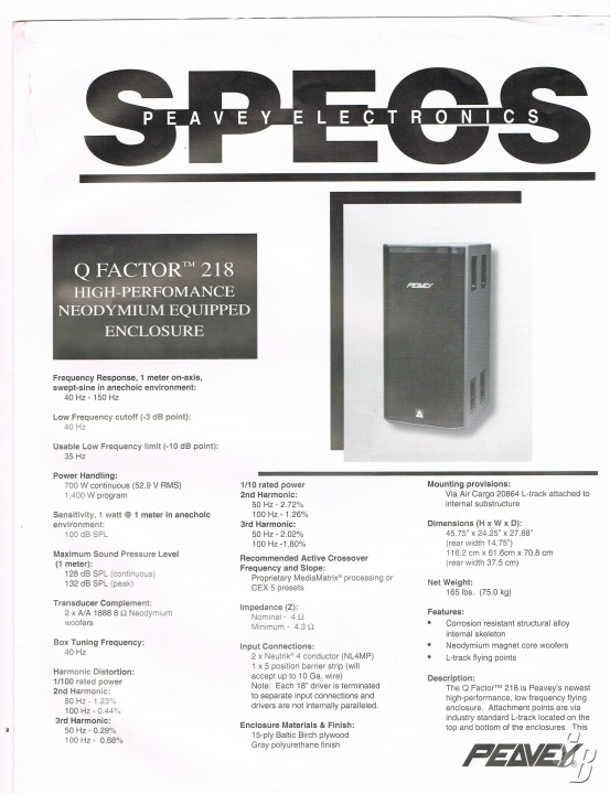 PEAVEY Q FACTOR 218 (YOM: ?) (S#: TBD) GOOD (7-8)