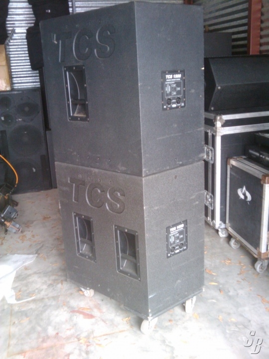 1X QSC 1602(HI'S), 1 CROWN XLS900 (HI-MIDS), 1X TA2400 (LOW MIDS). I HAVE 2 TCS1800 SINGLE 18 CABS SAME DIMENSIONS SAME PRICE EACH.