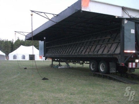 FEATURES: MADE IN CANADA BY STAGELINE THIS SERIES 1 MOBILE STAGE FEATURES A FULLY COVERED 50’ X 30’ PERFORMANCE STAGE AREA WITH A 10’X12’ ENCLOSED SIDE ROOM WITH ACCESS TO AND FROM THE STAGE. PROFESSIONALLY OPERATED AND MAINTAINED BY FACTORY TRAINED AND CERTIFIED TECHNICIANS, COMES WITH ALL REQUIRED CERTIFICATIONS AND DOCUMENTS. SETS UP IN 2 HOURS WITH TWO PEOPLE. GOOD CONDITION AND READY TO WORK.