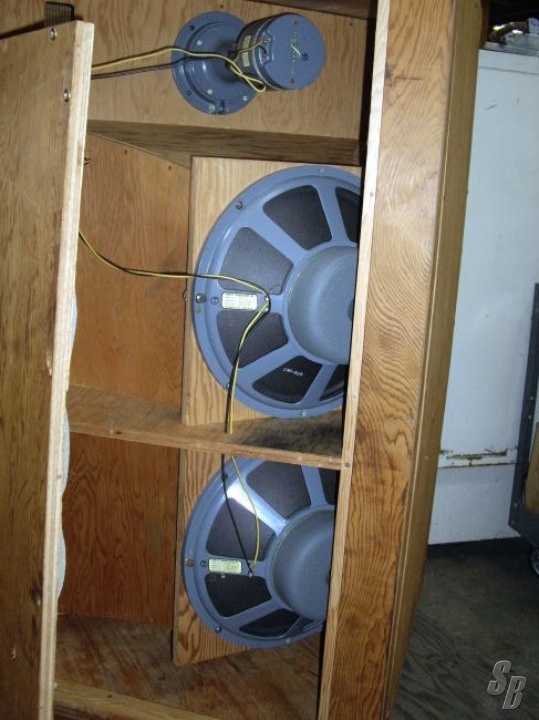 IT HAS TWO JBL 16 OHM D13OB 15" SPEAKERS KNOWN AS "THE SET". ALSO, A (K)D-175 HORN AND A 32 OHM CROSSOVER. FOR ALL TECHIE DETAILS AND HISTORY, GO TO THE LANSING HERITAGE SITE AND EXPLORE.