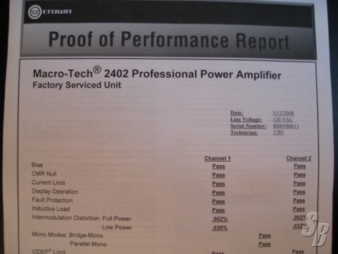 CROWN MA-2402 (YOM: ?) (S#:8000580611) POWER AMPLIFIER - REFURBISHED BY CROWN ON 13 MAY 2008 AND COMES WITH A 90 DAY FACTORY WARRANTY. FOB LAS VEGAS, NV