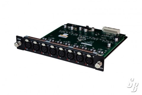 8 RECALLABLE PREAMPS WITH XLR CONNECTORS FOR BALANCED OR UNBALANCED MICROPHONE AND LINE LEVEL SIGNALS. GAIN, PAD AND 48V ARE DIGITALLY CONTROLLED WITHIN THE PREAMP.