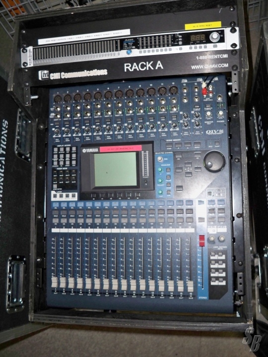 FEATURES: YAMAHA 01V96 MIXER HAS SIX AUXES AND SIX GROUPS. THE FIRST 12 CHANNELS ARE MIC INPUTS AND THE OTHER 4 ARE LINE TRS.