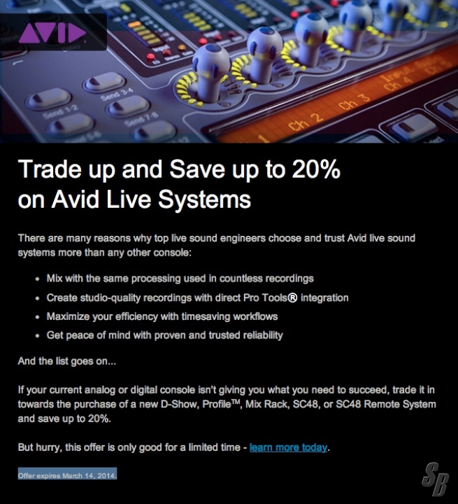 IF YOUR CURRENT ANALOG OR DIGITAL CONSOLE ISN'T GIVING YOU WHAT YOU NEED TO SUCCEED, TRADE IT IN TOWARDS THE PURCHASE OF A NEW D-SHOW, PROFILE, MIX RACK, SC48, OR SC48 REMOTE SYSTEM AND SAVE UP TO 20%.