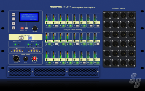 • DL431 IS A 6U 19" FIXED-CONFIGURATION RACK I/O UNIT DESIGNED FOR MICROPHONE SIGNAL SPLITTING APPLICATIONS WITH 24 MIC/LINE LEVEL INPUTS AND 72 LINE-LEVEL OUTPUTS AND DELIVERS LEGENDARY MIDAS SOUND QUALITY UTILIZING OUR TIME-TESTED AND ROAD PROVEN TECHNOLOGIES.