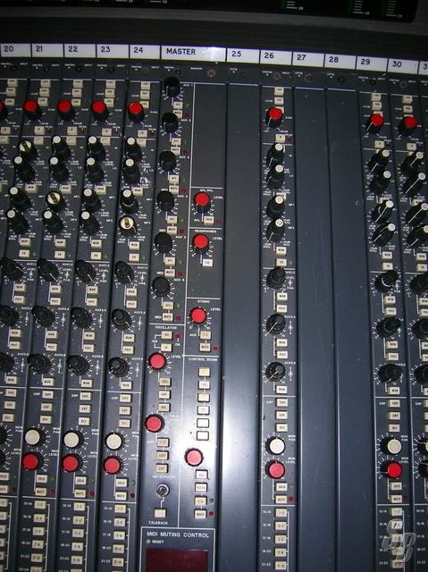 A 1991 MODULAR " IN LINE" CONSOLE, WITH FOUR BAND FULLY SWEPT EQ, 2 INPUTS/ CHANNEL (GIVING 96 INPUTS) MIDI MUTES, REV/MIX/GROUP SWITCHES,(ANY CHANNEL CAN BECOME A GROUP) 6 AUX SENDS, TWO C. ROOM FEEDS, STUDIO FEED, TALKBACK AND BUILT IN PATCH BAY. EDACS ON BACK FOR ACCESS TO ALL MIC AND LINE INPUTS ..UP TO 96 TIE LINES. INTEGRAL LEGS.