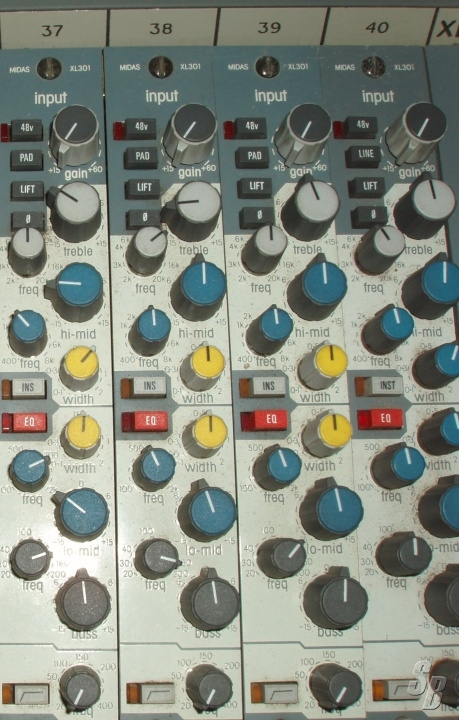 FEATURES: MIDAS XL3/48 CONSOLE. XL3/48 HAS DUAL CONCENTRIC CENTER SECTION. THERE ARE 32 MONO INPUTS, 8 STEREO INPUTS, 16 GROUP MIX OUTPUTS, AND LEFT-RIGHT MAIN OUTPUTS. CONSOLE HAS A 'TT' INSERT PATCHBAY. OUTPUTS ARE XLR.