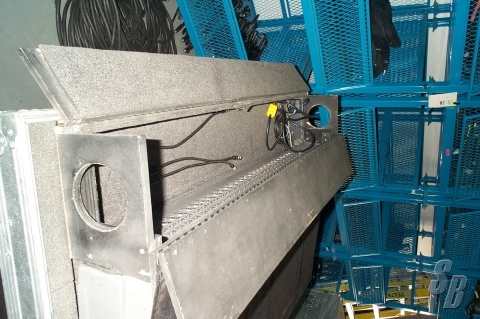 YAMAHA MC3210 MONITOR DESK. SERIAL # MX-01003(1999) MODIFIED SLIGHTLY SO IT HAS A BOARD COVER 3 EA. 18"" LITTLE LIGHTS WHICH MOUNT ON THE DESK ITSELF, ROAD CASE, SUPER CONDITION, FOB ALBERTA, CANADA - HAS NOT BEEN USED SINCE NYE 2001