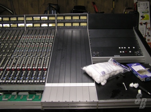 FEATURES: 56 CHANNEL FRAME, LOADED WITH 48 MONO, "BROWN" EQ CHANNELS. VU METERS, LEFT-HAND PATCHBAY, RIGHT-HAND "PRODUCER'S PANEL."