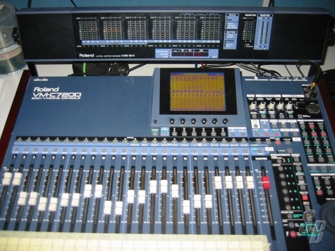 FEATURES: ROLAND VMC-7200 CONSOLE, VM-7200 CONSOLE PROCESSOR ( 24 ANALOG INPUT + 24 DIGITAL INPUTS ), METERBRIDGE, SIDEPANELS, R-BUS OPTION, EFFECT BOARD, 3X M-AUDIO R-BUS DELTA PCI HARDDISC RECORDING CARD