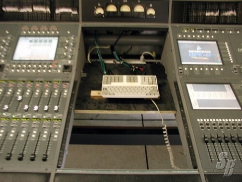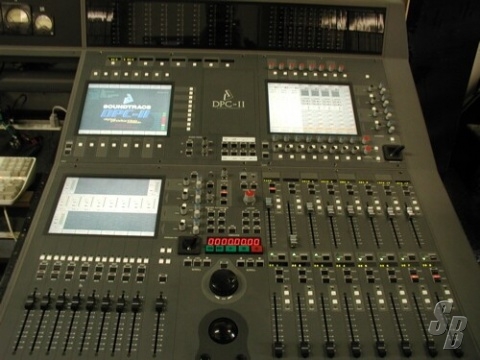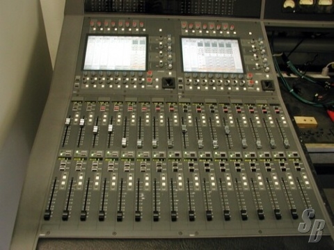 BOTH CONSOLES FEATURE TOUCH-SCREEN CONTROL SURFACES WITH MOTORIZED FADERS. ADDITIONALLY, BOTH CONSOLES HAVE BEEN RETROFITTED WITH ANALOG VU METERS FOR 5.1 SURROUND METERING. THE ARCHITECTURE OF THESE CONSOLES IS THOUGHTFULLY LAID OUT, WITH DSP PHYSICALLY LOCATED WITHIN THE CONTROL SURFACE AND AUDIO CONNECTIONS MADE VIA REMOTELY LOCATED AND REMOTE CONTROLLED MADI RACKS, EACH CONTAINING A VERY NICE ASSORTMENT OF DIGITAL AES/EBU AND ANALOG INPUTS AND OUTPUTS.