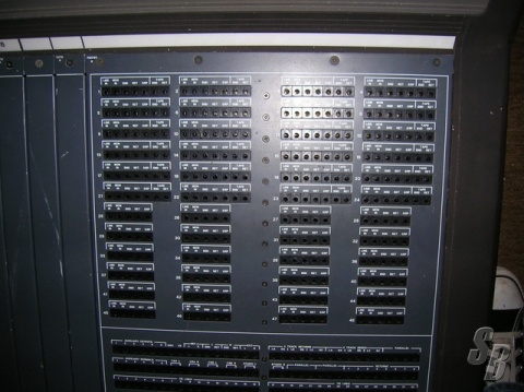REAR VIEW : USES 56 WAY EDAC (WIRED 16) GIVES 48 LINE IN. 24 TAPE SEND AND RETURN, (25>48 ) CAN COME IN ON LINE IN OR ON THE 96 TIE LINES , FULLY LOADED PATCH BAY FOR 2 TRACKS ,INSERTS , JUST ABOUT COVER EVERY EVENTUALITY