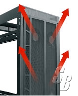 PROTECT EQUIPMENT FROM THE DAMAGING EFFECTS OF HEAT FROM SERVERS, NVRæ‹… AND DVRæ‹… WITH THE ADJUSTABLE 6 FAN HIGH CFM REAR DOOR. THIS CUPBOARD STYLE SPLIT REAR DOOR PULLS HOT AIR FROM THE REAR OF THE CABINET AND DIRECTS IT UP TOWARDS RETURN AIR DUCTS