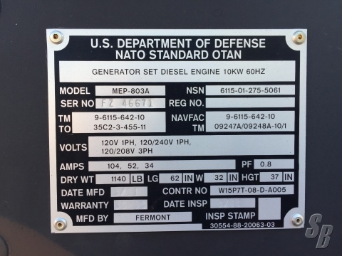 HISTORY: NEVER USED, THIS WAS PUT INTO LONG TERM PRESERVATION WHEN PURCHASED BY THE US GOVERNMENT. I HAVE THE ORIGINAL SIGNED PRESERVATION DOCUMENT AS WELL. UPON MY PURCHASING IT, AS IT CAME DRY OF ALL FLUIDS, I PUT NEW 15/40 OIL IN THE ENGINE, FILLED IT WITH ANTIFREEZE, AND FILLED THE DIESEL TANK. IT STARTED AFTER ABOUT FIVE SECONDS OF TURNING OVER. THIS IS QUIETER THAN MOST HOME AIR-CONDITIONING UNITS TOO.